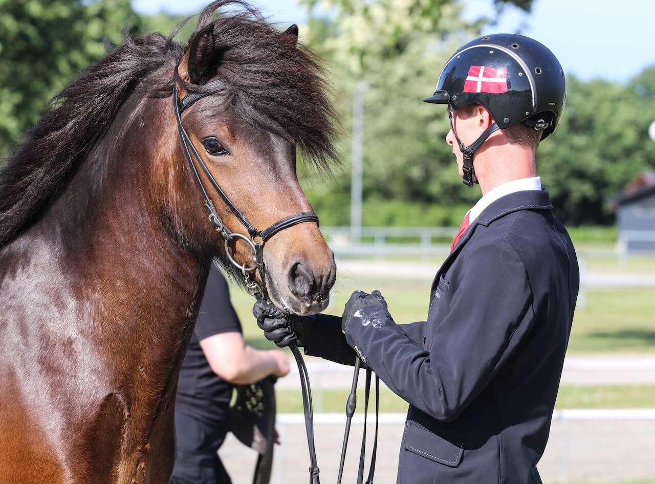Fra venstre: Formand for avlskomiteen i Dansk Islandshesteforening, Eyvindur Hrannar Gunnarsson, Hans Christian Løwe, Dimmbrá frá Tjaldhólum, Christina Johansen og Lillian Johansen.