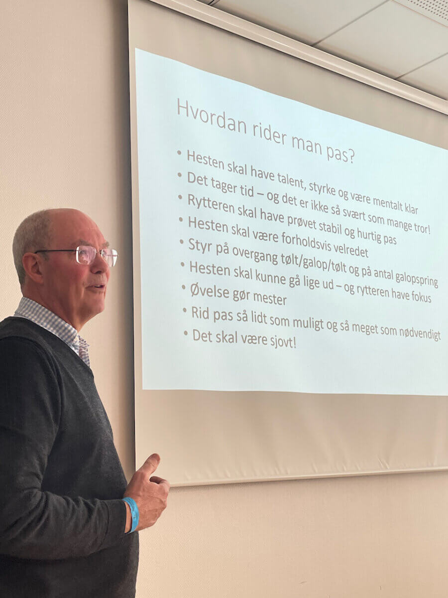 Jens var med, da pasbanen skyllede væk under ét af de første større mesterskaber for islandske heste. Det var på Skiveren strand i Danmark i 1977. Jens er ikke stoppet med at brænde for at ride pas. I talken delte han ud af sine erfaringer og viden om disciplinen. Af nogle også kaldet en kunstform. Især stilpassen, hvor ro og harmoni vægter højere end fart. Jens viste videoeksempler af heste i pas med vidt forkellige forudsætninger og anlæg. Han fremhævede, hvor vigtigt og godt det er, at vi nu har fået en diciplin i FEIF Sport Rules, der imødekommer den lidt mindre erfarne pashest og rytter uden krav til lægninger indenfor en vis tid og afstand ,som det er tilfældet i PP1. Et emne, TÖLT glæder sig til at dykke ned i et kommende tema om pas.