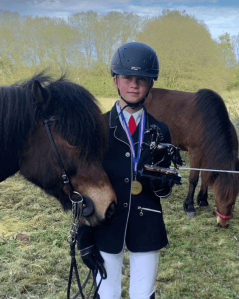 Johan fik også en pris ved gæðingakeppni-stævne i SAGA Svendborg i maj. Det var stævnets Feather prize for flot ridning og god horsemanship. Her vil Johan gerne indskyde, at han ikke mener, at man kan få sådan en pris uden af få hjælp. Derfor vil han gerne sige tak til sine undervisere Veronica Rauch. Mette Koefoed og Cecilie Østergård.