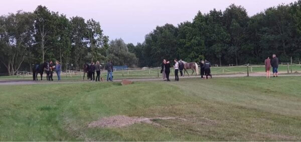 Nete og 25-30 frivillige lægger torsdag aften sidste hånd på DM-pladsen, der skal tage imod 103 tilmeldte ryttere inkl. familier og heste. Onsdag aften var 10-12 frivillige i gang.