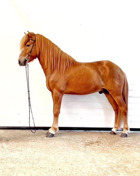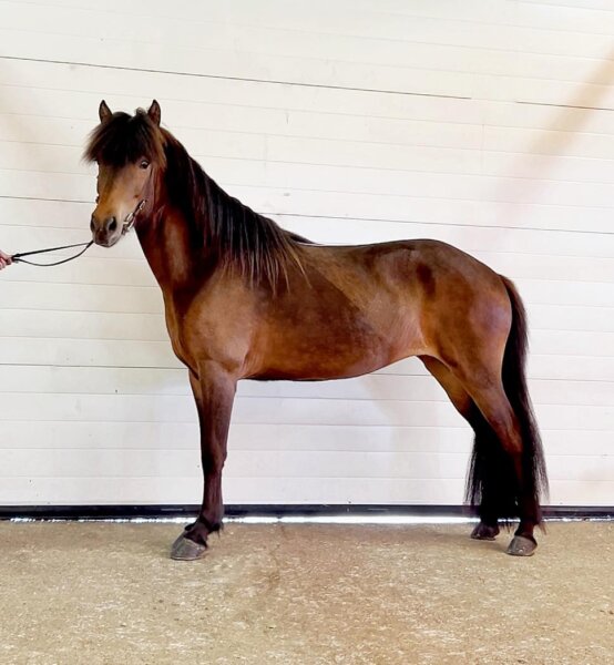 DK2021100843 – Mjölnir fra Debelmose. Rytter: Søren Madsen. Avler: Debelmose Isheste v. Søren Madsen Hesteejer: Debelmose Isheste v. Søren Madsen BYG: 8,46 RID: 8,22 I ALT: 8,30.
