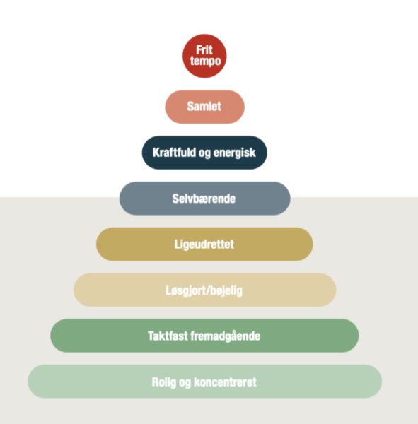 Først derefter kommer elementer som fremadtænkning, fleksibilitet, ligeudretning, bæring, kraft, samling og til slut frit tempo.
